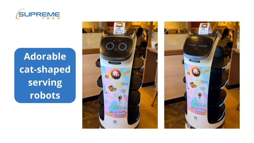 - The restaurant had adorable cat-shaped serving robots with expressive digital faces, but our table was actually served by a real staff member (still cute, though!).