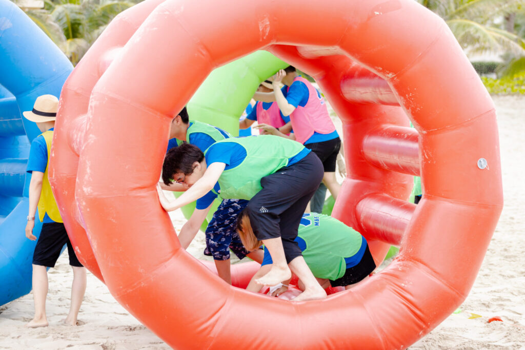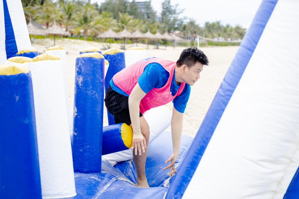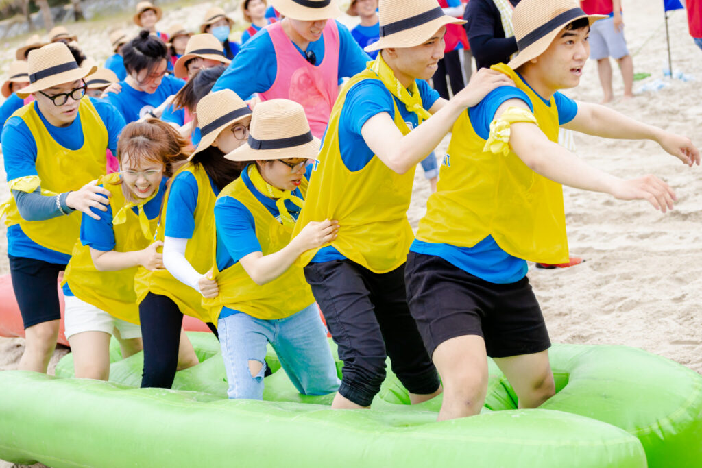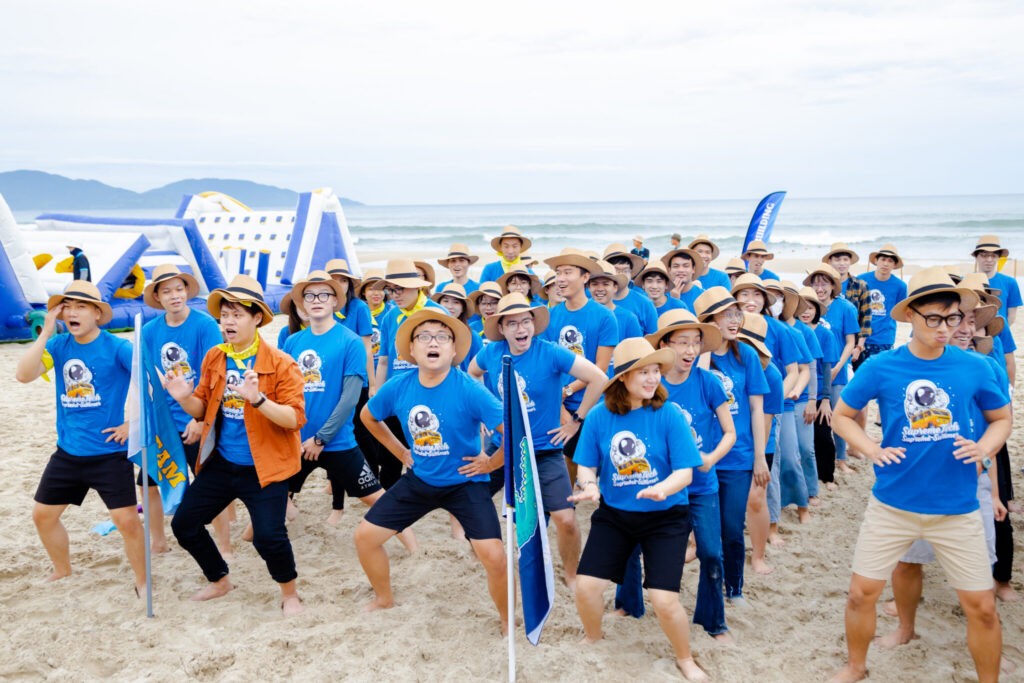 Starting at 8 AM, we stopped at Sandy Beach resort Da Nang with blue sea, white sand and straight coconut groves to start our exciting and “sweaty” team-building session.