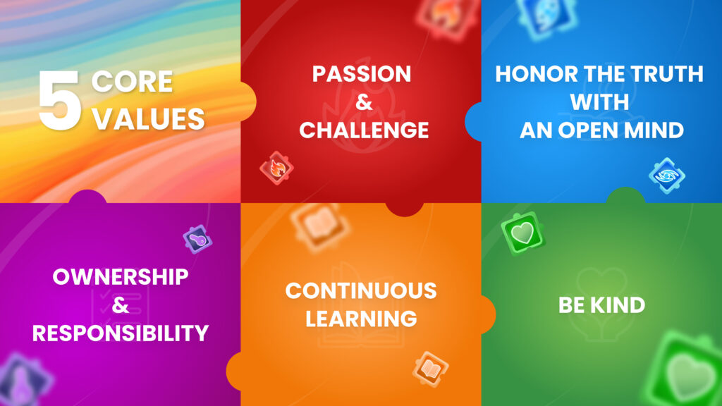 Tại SupremeTech, chúng tôi nhận thấy rằng năm giá trị cốt lõi của chúng tôi là cần thiết cho thành công và quan trọng trong việc định hình văn hóa công ty.