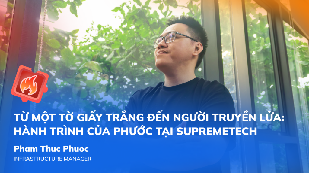 Chắc hẳn bạn sẽ bất ngờ khi biết rằng một người không có nền tảng về IT lại có thể mạnh dạn chuyển hướng sang ngành công nghệ và trở thành trưởng nhóm của một team kỹ thuật. Đó chính là hành trình đầy cảm hứng của Phước – từ một “tấm chiếu mới” trong lĩnh vực Infrastructure tại SupremeTech, bắt đầu trong bối cảnh đại dịch, đến khi trở thành leader của team Infrastructure. Trong bài phỏng vấn này, Phước sẽ chia sẻ những bài học quý giá, cách bạn học hỏi từ những sai lầm và dám đón nhận thử thách là chìa khóa giúp Phước phát triển sự nghiệp trong ngành công nghệ.