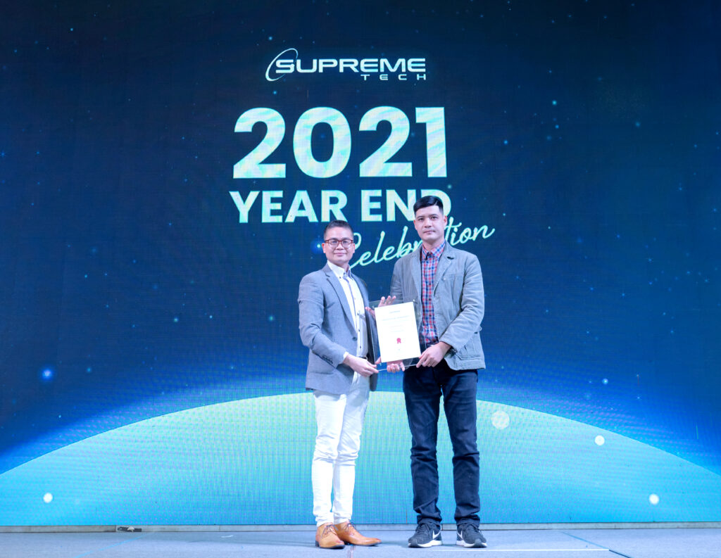 Trong buổi lễ, chúng tôi đã vinh danh các cá nhân và tập thể đạt thành tích xuất sắc trong năm 2021. Ngoài các giải thưởng và thăng chức thường niên dành cho các cá nhân, đội nhóm và dự án xuất sắc, SupremeTech còn có buổi bổ nhiệm Giám đốc đặc biệt dành cho CTO mới của công ty – Ông Nguyễn Văn Đạo.